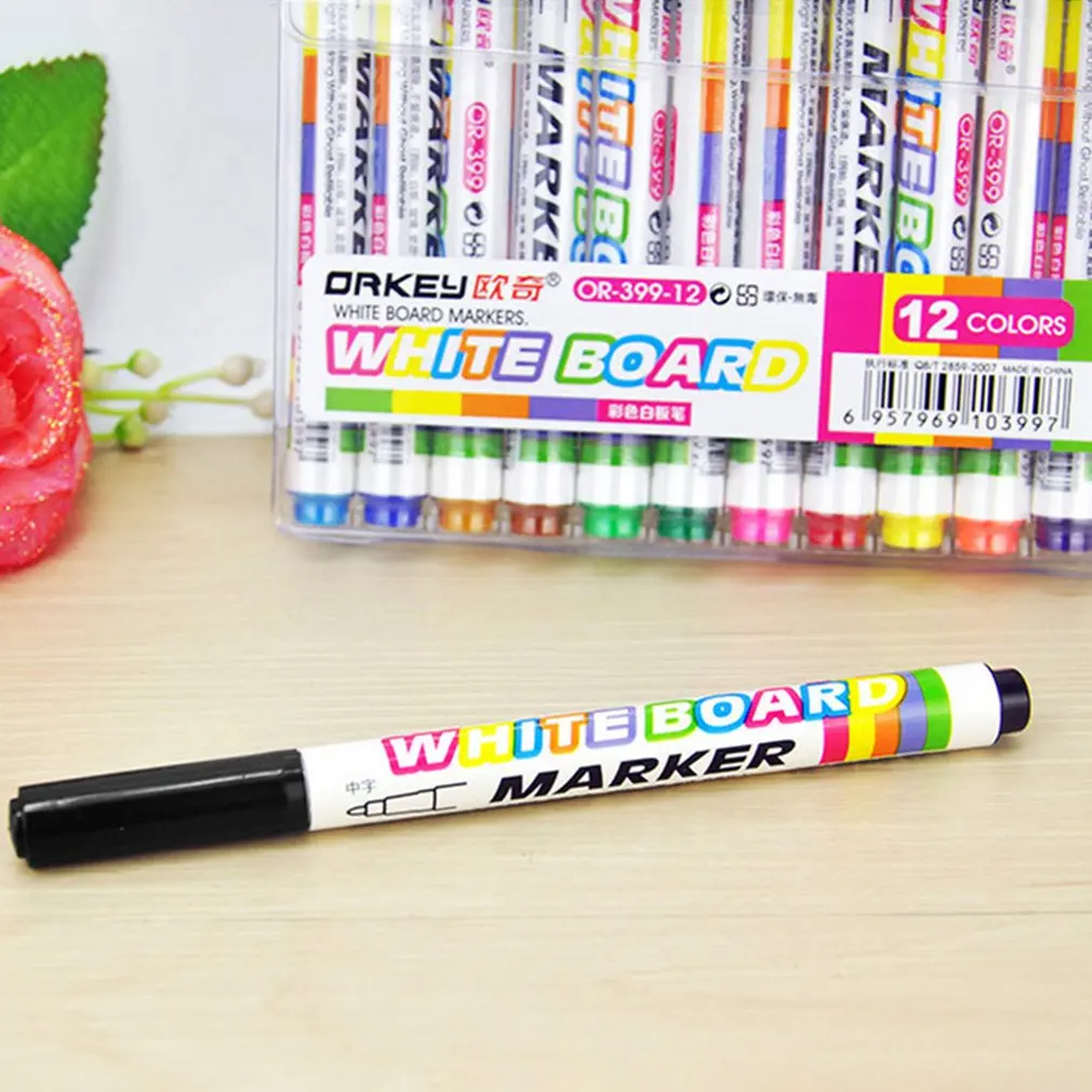 12 Color Assorted Colour White Board Marker Pens Dry Erase Easy Wipe 12 Color Office Products Erasable Markers Smkn4 Bdl Sch Id