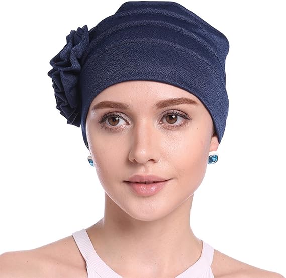 Upsmile Women Chemo Cap Soft Sleep Turban Headwear Hat With Elegant Strench Side Flower Pleated Skull Caps For Cancer Patients Navy Amazon Ca Clothing Accessories